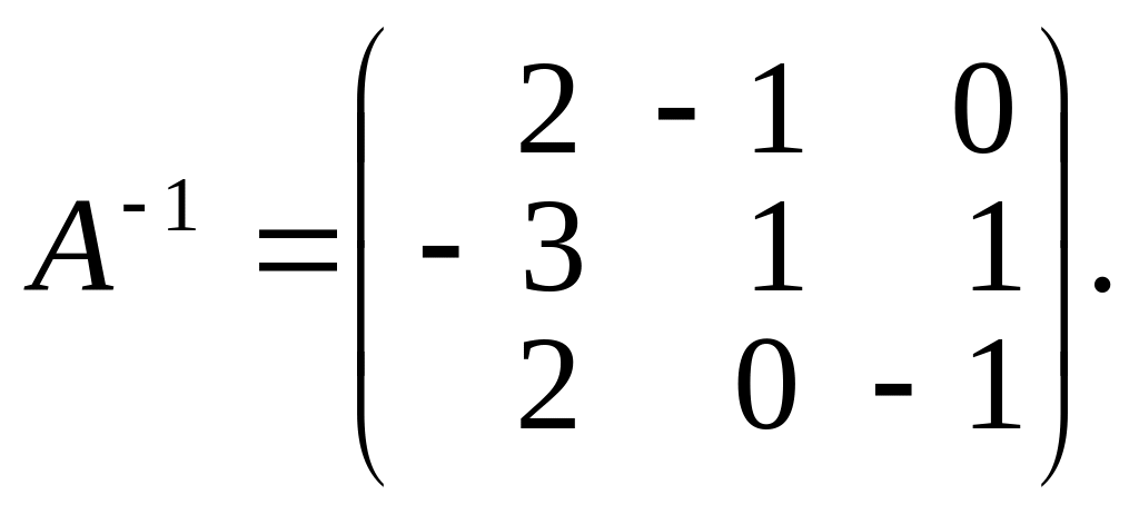 Умножая третью строку на (–1) и прибавляя ко второй, а затем к первой строке, получаем четвертую матрицу. Умножая ее вторую строку на (–1) и прибавляя к первой строке, получаем пятую матрицу: слева от черты – единичная матрица, справа – матрица А–1, обратная исходной матрице А.