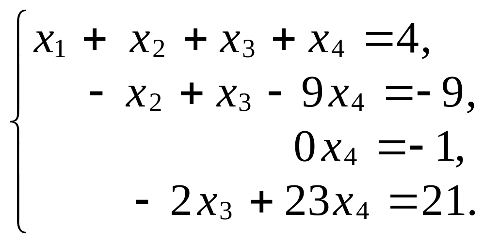 Эта система несовместна, т.к. никакие значения неизвестных не могут удовлетворить ее третьему уравнению.