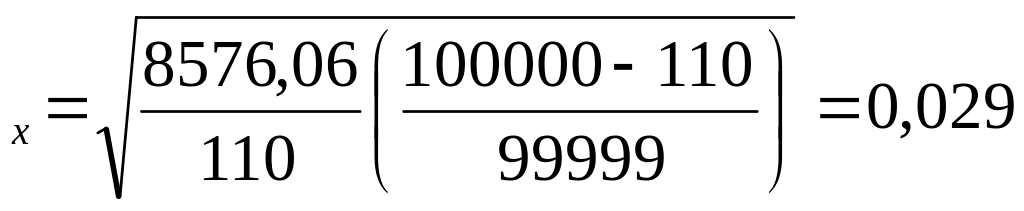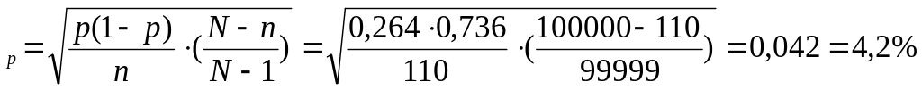 Так как выборочное наблюдение велось бесповторным методом, то средняя квадратическая ошибка средней рассчитывается с корректировкой на бесповторность, т.е.