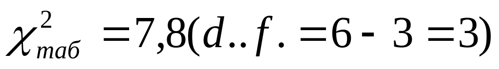 Число степеней свободы равно k-l-1,где l- число условий, которые предполагаются выполненными при вычислении теоретических частот, k –число групп