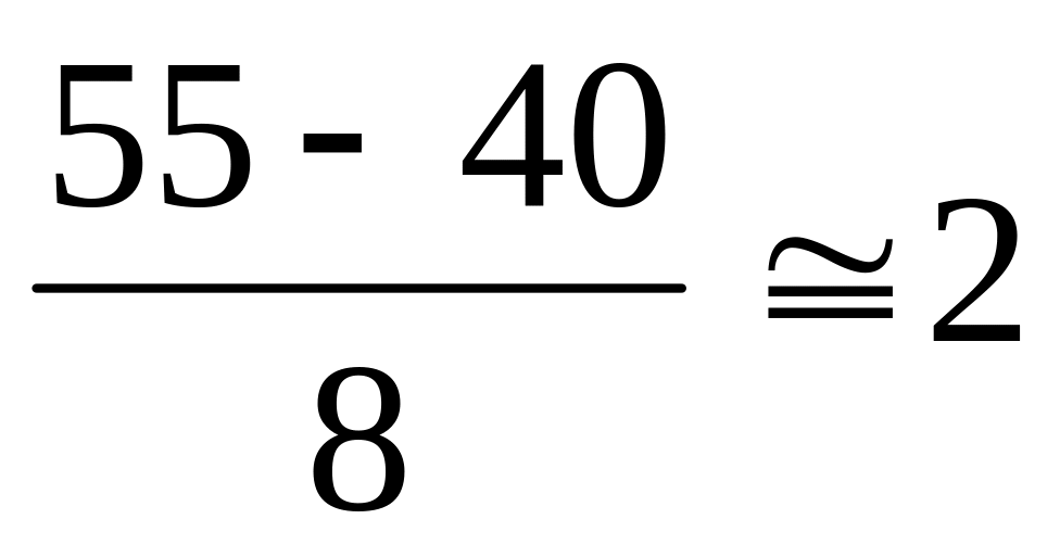 2) ≤ , т.е.рассчитанный критерий не превышает максимально возможную величину расхождения эмпирических и теоретических частот ,которая может возникнуть в силу случайных колебаний выборочных данных. В этом случае гипотеза о близости эмпирического распределения к нормальному не отвергается.