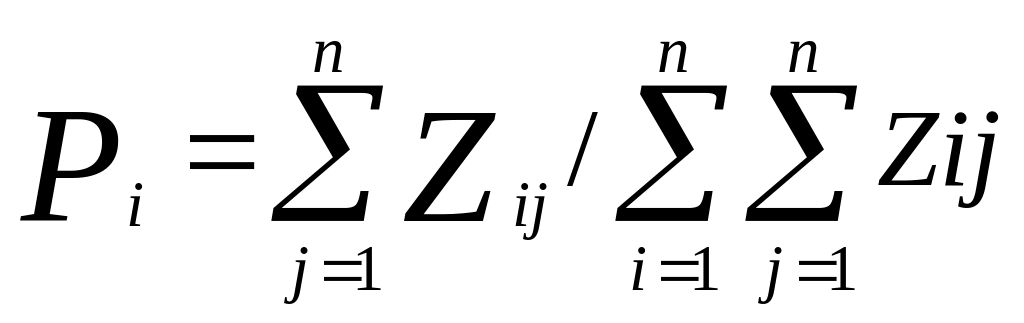 Фирмы i, j входят во множество М=1,2,…n ранжируемых фирм. Сравниваемые пары образуют матрицу ||Z||nxn значений этих соотношений, где n – число сравниваемых рекламных фирм.
