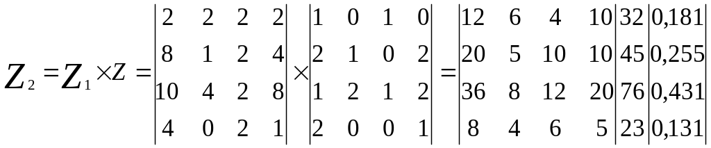 Таким образом, порядок рейтинга фирм стабилизируется и утверждаются весовые коэффициенты – С. Чем больше производить умножение полученных матриц на исходную ||Z||, тем точнее значения весов Р и весовых коэффициентов – С. Практически перемножение матриц можно закончить на 4 этапе.