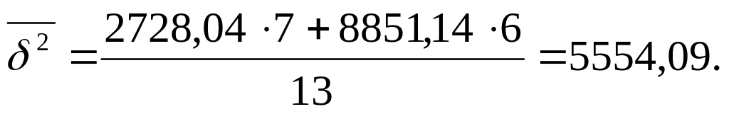 Вариация цен под влиянием прочих факторов, исключая местоположение курорта, характеризуется средней из внутригрупповых дисперсий: