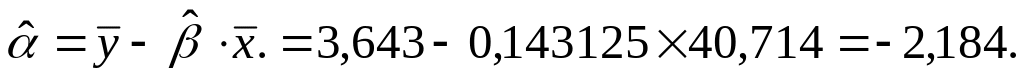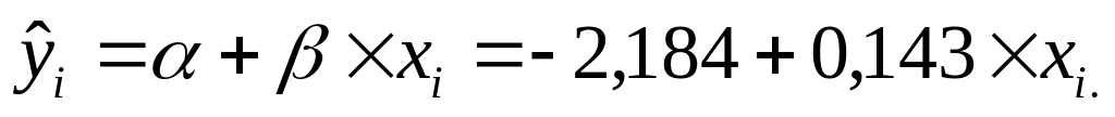 а = 0,143125; b = –2,184375. Тогда уравнение регрессии имеет вид: