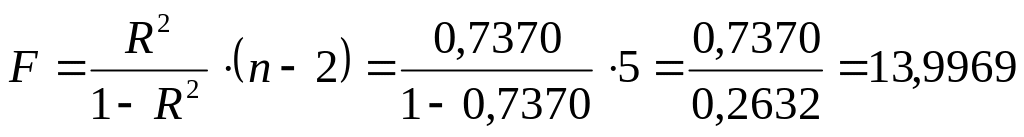 2. Оценка качества уравнения и проверка значимости коэффициентов регрессии. Для определения оценки качества уравнения регрессии и проверки значимости модели используем F-критерий Фишера с проведением дополнительных вычислений (табл. 3).