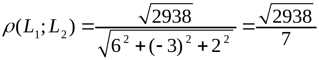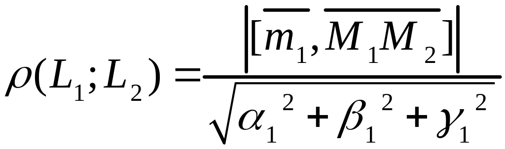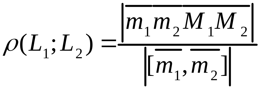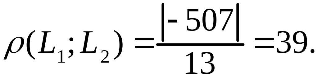 Из (3.12) следует, что и параллельны. Значит, угол между ними равен 0. Расстояние между параллельными прямыми вычисляется по формуле (3.19).
