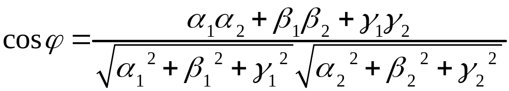 Так как две прямые образуют два угла в сумме равных , то, если , найден косинус большего из них, а, в противном случае, – меньшего.