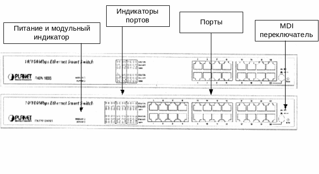 FNSW-16/2400S PLANET switch belongs to the class of intelligent switches. In a local area network of the laboratory of the Communication networks chair it performs the function of an access switch of a local segment which includes 10 computers. Using VLAN technology by means of ports grouping of this switch the specified segment can be divided into smaller network segments, without resorting to physical network sharing. It is very convenient in the case when it is necessary to organize fast networks for small user groups, each of which solves the independent task. These workgroups can organize an access to common information resources, having included a server an which they are concentrated in the structure of each group.