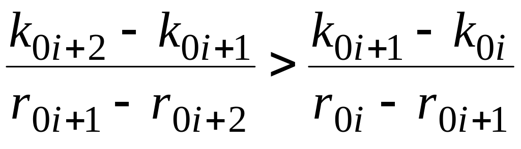 Функция минимальных затрат от определяется нижней огибающей затрат для разных сечений (см. рис. 2.3). Она неудобна для использования в моделях, т.к. на границах интервалов кривая меняет изгиб, и производные имеют разрыв. Поэтому нижнюю огибающую аппроксимируют плавной зависимостью. В качестве предикторов при этом можно принять: