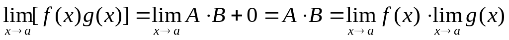 Используя понятие бесконечно малых функций, приведем доказательство некоторых теорем о пределах, приведенных выше.