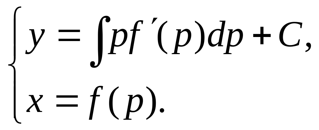 Решение уравнений, не содержащих в одном случае аргумента х, а в другом – функции у, ищем в параметрической форме, принимая за параметр производную неизвестной функции: