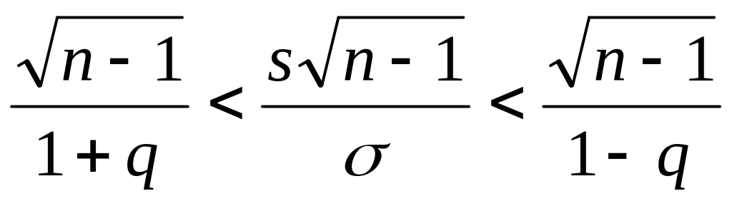 Существуют таблицы для распределения «хи-квадрат», из которых можно найти q по заданным п и , не решая этого уравнения. Таким образом, вычислив по выборке значение s и определив по таблице значение q, можно найти доверительный интервал (5.1), в который значение σ попадает с заданной вероятностью .