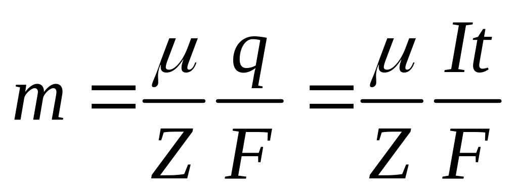 1-ый закон Фарадея для электролиза: масса вещества, выделенного на каждом электроде пропорциональна заряду, прошедшему через электролит