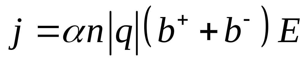 здесь концентрация n положительно и отрицательно заряженных носителей электрического тока одна и та же, т.к. считая, что молекулы диссоциируют на два иона, получим, что концентрация анионов и катионов одинакова.