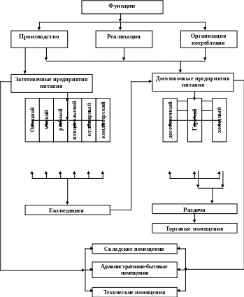 Рис.1.2. Торгово-производственная структура предприятий питания с учетом выполняемых функций