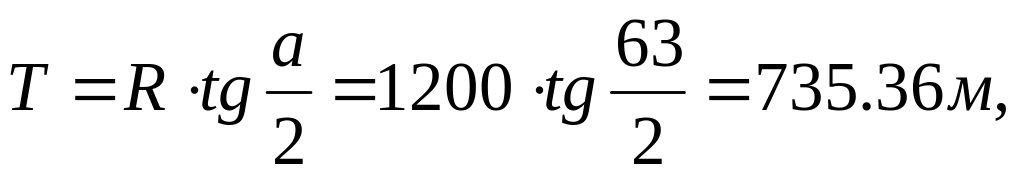 Тангенс Т, м, и длина проектируемой кривой К, м, определяются по формулам: