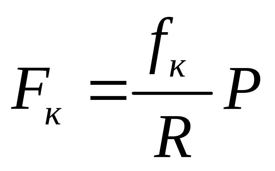 Сила Fк трения качения (в Н) зависит от коэффициента fк трения, радиуса R цилиндра и нагрузки P: