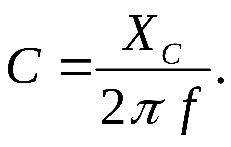 В первом случае необходимо обеспечить заданное емкостное сопротивление XC конденсатора. При этом нужно определить, чему равна ёмкость C этого конденсатора при частоте f. Для этого применима формула
