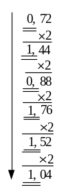 Пример. Перевести число 0,72(10) в двоичную систему счисления с точностью до пяти знаков после запятой.