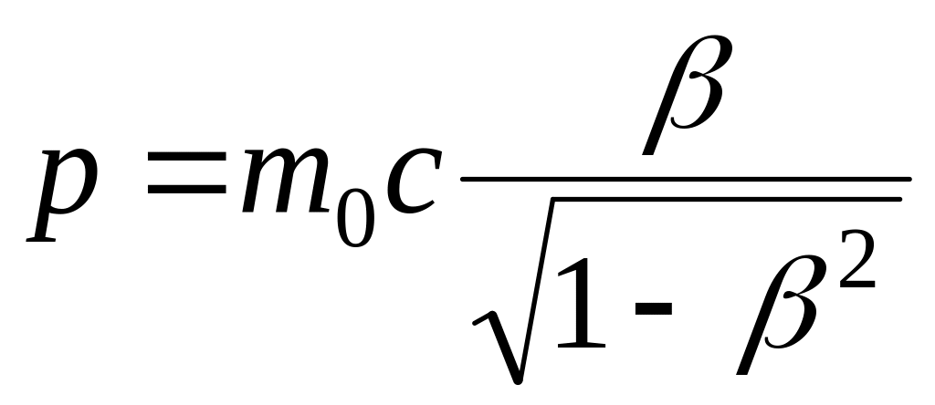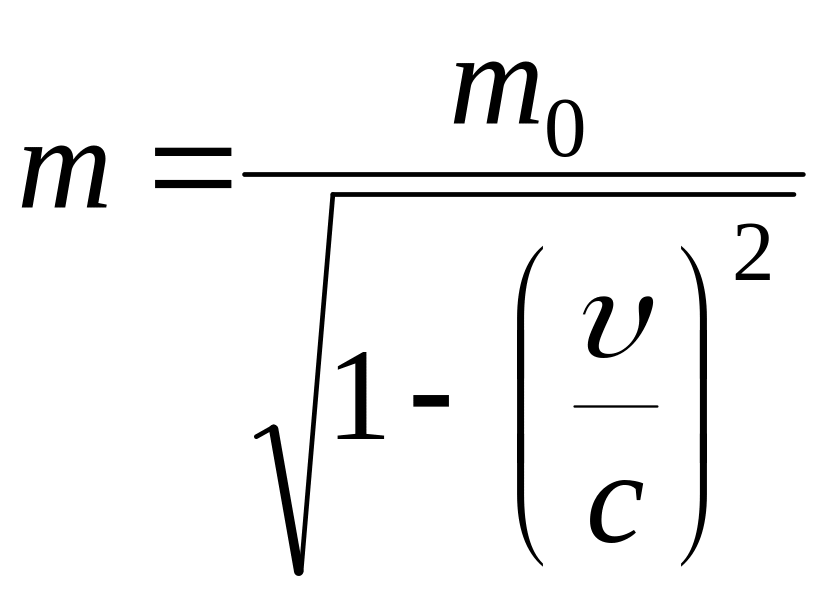 мұндағы, т0 – бөлшектің тыныштық массасы; –оның жылдамдығы; с– жарықтың вакуумдағы жылдамдығы; – жарық жылдамдығының бөлігі арқылы берілген бөлшектің жылдамдығы (=/с).