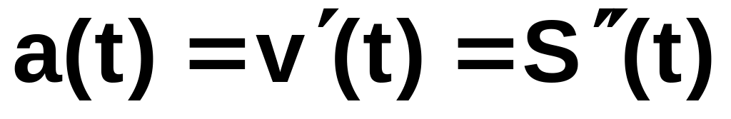 Ускорение прямолинейного движения материальной точки в момент времени t равно первой производной от скорости по времени или второй производной от пути по времени