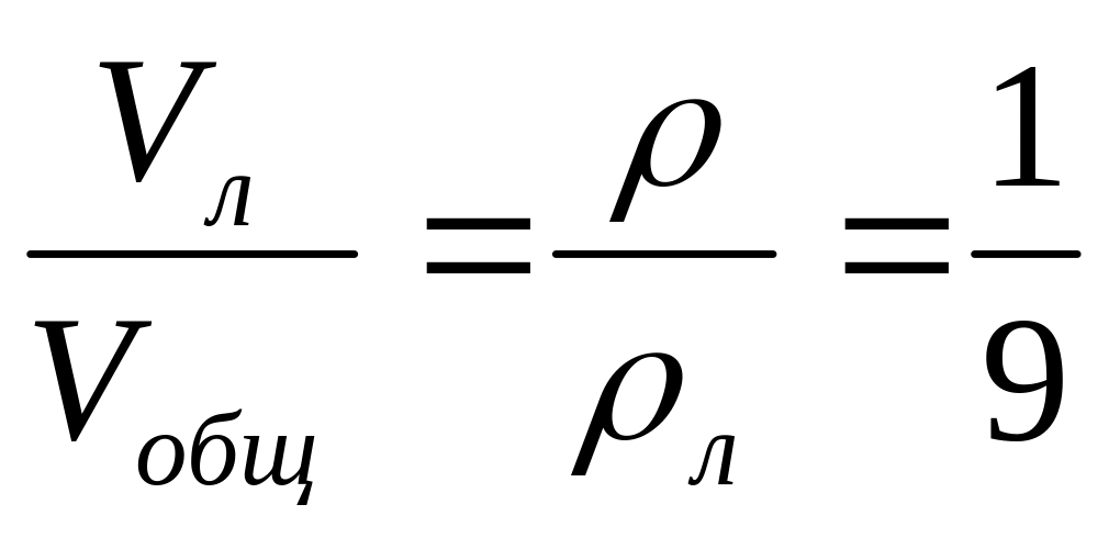 Снег состоит из воздуха и льда. Средняя плотность снега равна 100 кг/м3. Плотность льда равна 900 кг/м3, а плотность воздуха мала по сравнению с плотностью льда, и её можно считать равной нулю. Определите, какую часть объёма снега занимает лёд, а какую – воздух.