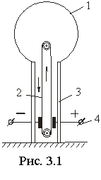 У 1931 р. Ван де Грааф виготовив перший електростатичний генератор (рис. 3). Високовольтний електрод 1 закріплено на ізоляційній підставці 3. Всередині системи рухається діелектрична стрічка 2, що заряджається від електродів 4. З допомогою стрічки заряд переноситься всередину сфери.