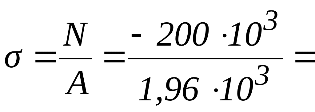 3) Нормальные напряжения в поперечных сечениях стержня: