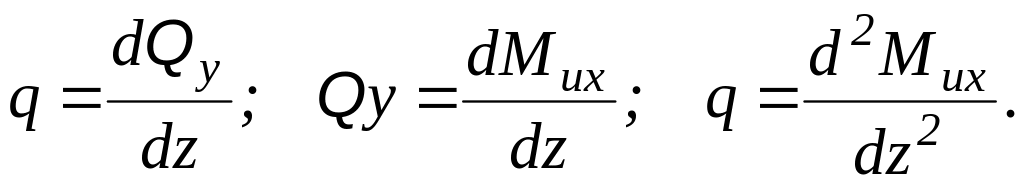 Построение эпюр Qy и Мuх можно легко проверить, используя дифференциальные зависимости между интенсивностью распределенной нагрузки q, поперечной силой Qy и изгибающим моментом Мuх в конкретном поперечном сечении: