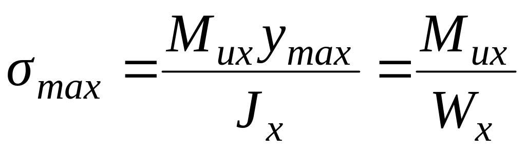 Из формулы (4.3) следует, что максимальные нормальные напряжения при изгибе возникают в точках, наиболее удаленных от нейтральной оси: