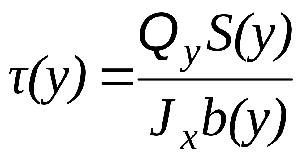 При наличии в поперечном сечении внутренней перерезывающей силы Qy смежные сечения сдвигаются относительно друг друга в направлении Qy, что вызывает появление в сечении касательных напряжений , которые для прямоугольных сечений и составленных из прямоугольников параллельны Qy, по ширине сечения постоянны, а по высоте изменяются согласно формуле Журавского (рис. 4.6):