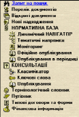 Примітка. При роботі з будь-яким класифікатором системи є можливість зберігать добірки документів будь-якого рівня класифікатора (т.з. “вузли” класифікатора). Для цього достатньо у вікні класифікатора підвести курсор миші до будь-якої його гілки, натиснути ліву кнопку миші та пересунути “вузел” в будь-яку папку в лівій панелі системи. При цьому в папці збережений “вузел” класифікатора буде у вигляді переліку документів, які відносяться до обраної гілки класифікатора.