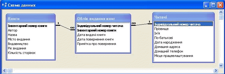 Процес визначення таблиці починається на стадії її проектування. Саме на цій стадії розробник бази даних має зробити аналіз інформації, яку необхідно обробляти. Для визначеності розглянемо інформацію про бібліотеку, яка складається з відомостей про книги та читачів. Ці відомості в реляційних СУБД необхідно представити сукупністю двовимірних таблиць. Нехай, база даних називається Бібліотека та складається з трьох таблиць: Книги, Читачі та Облік виданих книг.Визначимо таблицю Книги,в якій розміщуються дані прокниги: інвентарний номер; автор; назва; місто видання; видавництво; рік видання; кількість сторінок. Це майбутні поля таблиці. Визначимо тепер назву, тип даних цих полів та зведемо все до таблиць: