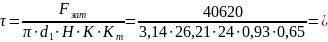 Определяем касательное напряжение в резьбе болта