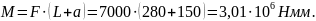 Момент, действующий относительно центра жесткости болтового соединения