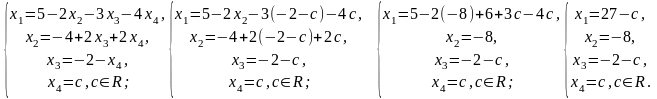 Так как число переменных в системе (4) больше числа уравнений (3), то одну переменную, например x4, объявим свободной, (она может принимать любые значения), а остальные переменные выразим через нее.