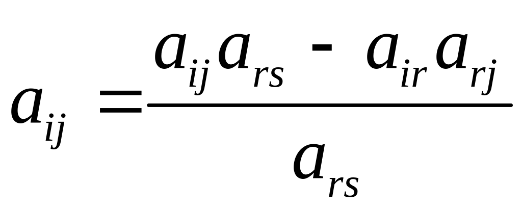 Подчеркнем, что в числителе из произведения, содержащего разрешающий элемент, вычитается произведение элементов в двух остальных вершинах прямоугольника.