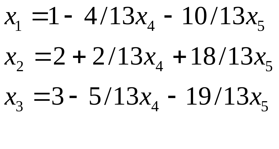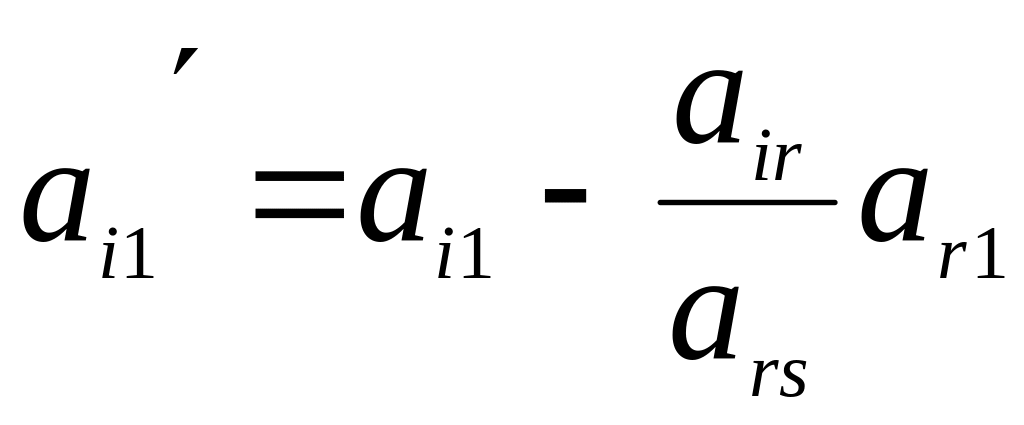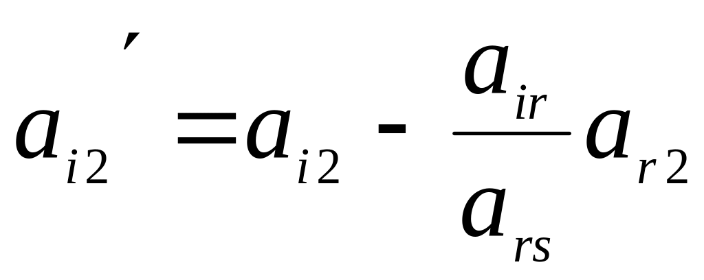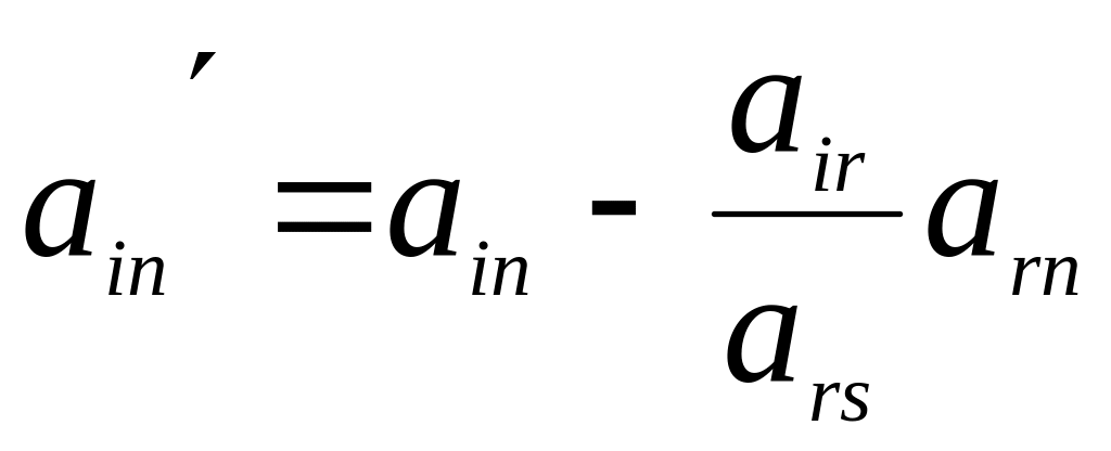 Подставляя значение в последнее уравнение, исключим переменную из -го уравнения, остальные коэффициенты будут равны (новые значения коэффициентов обозначаются со штрихами)