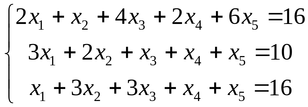 (справа от таблицы выписана система уравнений, соответствующая таблице).