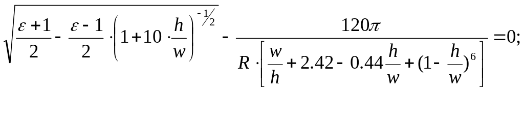 Эти уравнения получены из соотношений (1.1), (1.2) и (1.3). Уточнение значений wш/h и wт/h производится до тех пор, пока не будет достигнута 1%-я точность для волновых сопротивлений Rт и Rш.