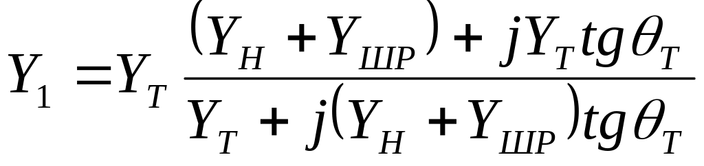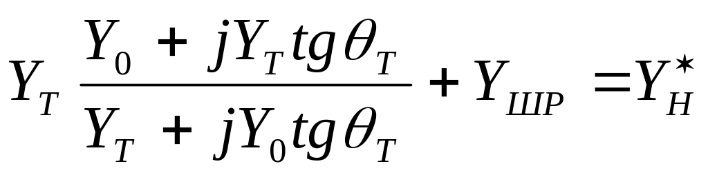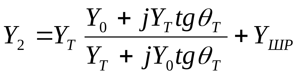 Проводимость Y1 равна трансформированной отрезком линии проводимости Yн+Yшр, так как подключенная к зажимам 2-2 проводимость складывается из проводимости шлейфа Yшр и проводимости нагрузки Yн. Подставляя в формулу (1.11) Y=Yн+Yшр и Y=Yт, получаем