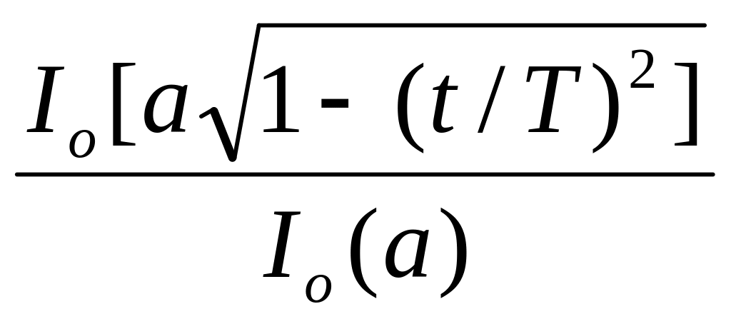 Некоторые виды функций временного окна приведены в таблице 2.2 (функции временного окна определены на интервале [-Т, Т] и за пределами этого интервала обращаются в нуль, поэтому импульсные характеристики ВШП, соответствующие своим функциям временного окна, определены при |t|≤T и при |t|>T тождественно равны нулю; приведенные в табл. 2.2 выражения для функции временного окна и импульсной характеристики ВШП соответствуют |t|≤T).