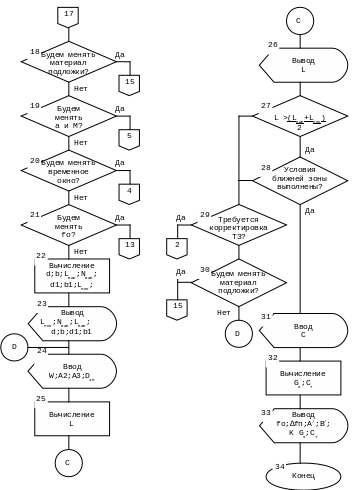 Рассчитанные значения LМПО, NМПО, LВШП, d, b, d1 и b1 (оператор 22) выводятся на экран дисплея (оператор 23).