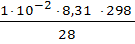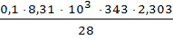 m = 0,1 кг, М= 28 кг/кмоль, T = 273 + 70 °С = 343,