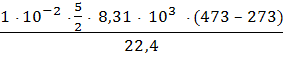 T1 = 273 K; T2 = 473 K; Сv = R; 10 л = 1 · 10-2 м3; 1 кмоль = 22,4 м3.