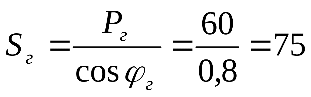 Принимаем к установке на электростанции 5 турбогенератора ТВФ‑60 с номинальной мощностью 100 МВт и номинальным коэффициентом мощности cosφг = 0,8. При этом: