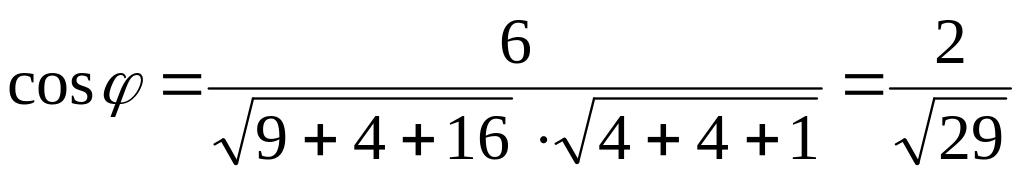 Пример. Даны координаты трех точек А(2; -1; -2), В(1; 2; 1), С(2; 3; 0). Найти косинус угла при вершине А, площадь треугольника АВС.