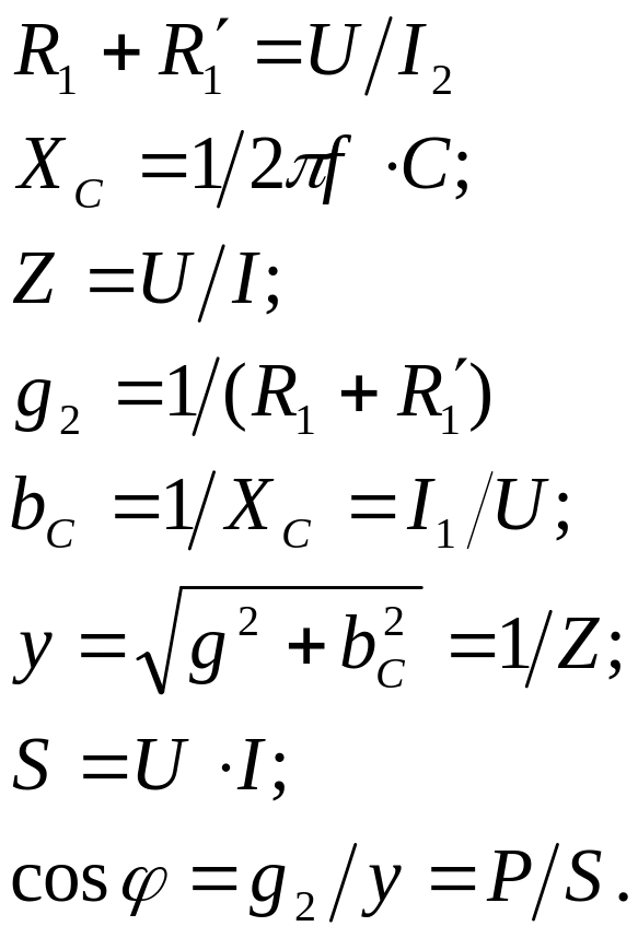 Вычисление провести для тех значений емкости, при которых проведены измерения по п.3. предыдущего раздела. Вычисления провести по соотношениям: