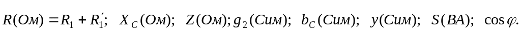 3. Изменяя величину емкости /с помощью ключа /, произвести измерения токов, напряжения на элементах цепи и активной мощности при 7-8 значениях емкости батареи конденсаторов .